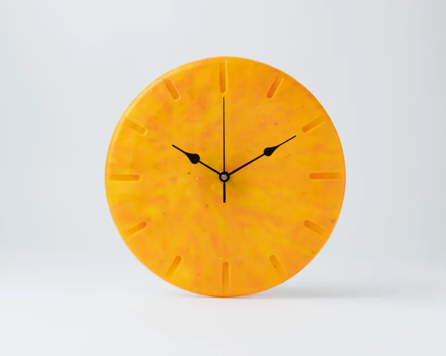 海洋プラスチックから生まれた、buoyの掛け時計です。 大きな文字盤に広がる表情豊かな模様は、空間のアクセントになります。 buoyの製品は、着色などの加工を一切加えず、海岸に漂着し回収された海洋プラスチックそのものの色味を活かしています。 明るい発色が魅力の素材ですが、複数の色が混ざり合うことで、有機的なモザイク模様に。 ひとつとして同じ表情がない、世界に一つだけの製品です。 日常に彩りを添える一品として。 自分へのご褒美にも、ギフトにもおすすめです。 ※単3電池を1本使用します。電池は同梱されていませんので別途ご購入ください。