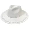 ペーパー素材のツバ広ハット。腰とツバ先に透かし編みのテープを挟み込みました。帯の無いすっきりとしたシルエットです。