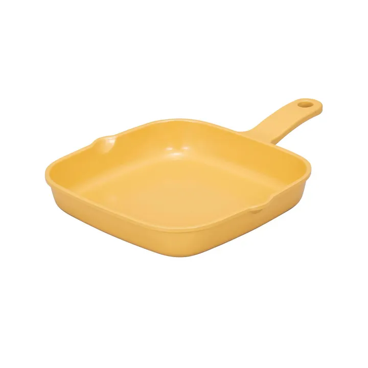【コパン グリルプレート角型18×18cm / 丸型19cm】 『コパン グリルプレート角型18×18cm / 丸型19cm』は、魚焼きグリルやオーブンにそのまま入れて調理できる便利なプレート。軽量なアルミニウムに全面セラミック塗装加工を施しており、焦げ付きにくく、汚れが落ちやすいのでお手入れも簡単。調理後はそのまま食卓に出してプレートとしても使え、明るくポップな色合いでテーブルを華やかに演出します。 【魚焼きグリルにぴったりフィット】 角型18×18cm・丸型19cmはどちらも一般的な魚焼きグリルにぴったり収まるサイズ設計。焼き魚はもちろん、グリル野菜やチキンなど幅広いメニューに対応し、グリル内の汚れも軽減します。 【両側に注ぎ口付きで使いやすい】 本体の両側に注ぎ口が付いており、ソースや汁物もこぼさず注げます。右利き・左利きどちらの方にも使いやすい設計で、調理のストレスを軽減します。 【焦げ付きにくいセラミック塗装加工】 内面・外面ともにセラミック塗装加工が施されており、焦げ付きにくく油の使用も少量でOK。ヘルシーな料理が楽しめる上、汚れもサッと落ちてお手入れもラクラクです。 【食器洗浄機対応でお手入れ簡単】 使用後は食器洗浄機で丸洗い可能。面倒な後片付けの手間を省き、日々の調理をより快適にサポートします。 【製品情報】 商品名: コパン グリルプレート角型18×18cm サイズ: W275×D198×H46mm 重量: 315g 満水容量: 0.85L 最大内径: 18×18cm 底の厚さ: 3mm(はり底を含む) 材料の種類: [本体]アルミニウム合金 表面加工: [内面]セラミック塗装加工[外面]セラミック塗装加工 原産国: 中国 【製品情報】 商品名: コパン グリルプレート丸型19cm サイズ: W277×D202×H48mm 重量: 288g 満水容量: 0.75L 最大内径: 19cm 底の厚さ: 3mm(はり底を含む) 材料の種類: [本体]アルミニウム合金 表面加工: [内面]セラミック塗装加工[外面]セラミック塗装加工 原産国: 中国