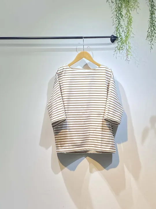 【ベーシックこそ素材が大事】バスク天竺ボックスタックTシャツ オフ×ベージュ