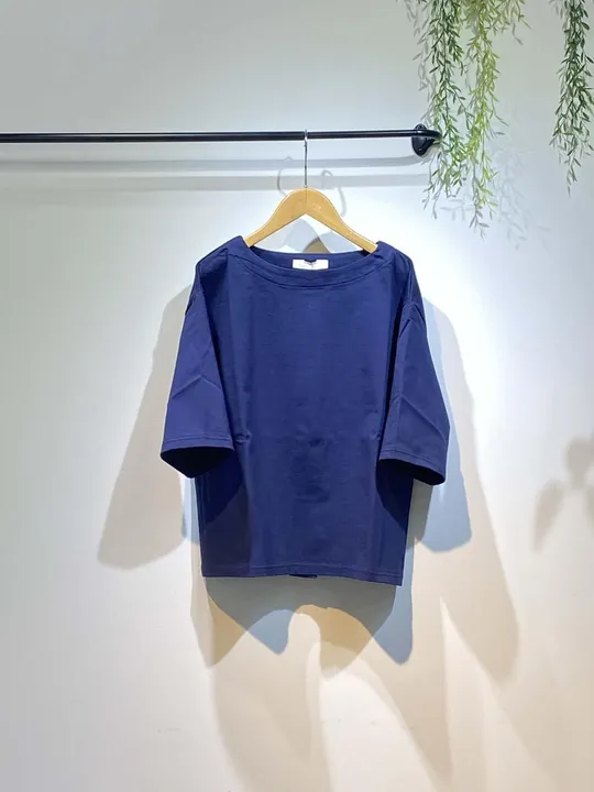 【ベーシックこそ素材が大事】バスク天竺ボックスタックTシャツ ネイビー