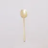 BRASS(ブラス・真鍮)製のカトラリーでおやつタイムを格上げ! 食卓の様々なシーンで活躍する、デザイン性の高いスプーンです。 細長い柄の部分がスタイリッシュで、テーブルコーディネートを格上げしてくれます。 見た目の良さだけでなく、細長い柄の部分はジャムやペーストタイプを分け合う時にもおススメ。 BRASS製のカトラリーは職人たちによる手作りで作られており、美しく独創的なデザインが特徴です。 BRASSは気兼ねなくお使いいただける素材ですので、お馴染みのカトラリーと同様に気楽に洗って頂けます。 使えば使うほど愛着がわき、長きにわたってお使いいただけます。