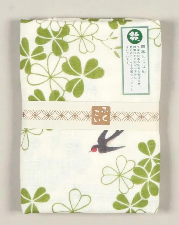 ふくこい ふんわり二重ガーゼ手拭い 「燕とクローバー」 タイトルの「福来い!」にちなんで、縁起の良い柄を集めた手拭いです。ふんわりとした肌触りや吸水性の良い、二重ガーゼ素材を使用。安心の日本製です。 「四葉とつばめ」つばめは春の到来を告げる鳥。四葉はその形が十字架に見える事から、幸運のシンボルとされています。