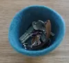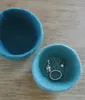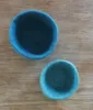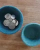 フェルトのボール小物入れ 新しく、ふんわりやさしい雰囲気の「フェルトのボール小物入れ」ができあがりました。 大小2個セットで、カラーは爽やかなターコイズ系のセットと、可憐な紫とピンクのセットの2種類をご用意。大きいのは約直径10×高5.5cm, 小さいのは約直径8×高4.5cm 小さなピアスやブローチなどのアクセサリー、文房具や鍵など、散らばりがちな小物をまとめて収納するのにぴったりです。 クッション性のあるフェルト素材なので、デリケートなアクセサリーを入れても安心。 デスクの上や化粧台、玄関の棚など、どこに置いても使いやすく、インテリアのアクセントにもなります。 大人かわいい色合いと、手仕事ならではの温かみは、お部屋をやさしく彩ってくれます。 家具や小物との相性も良く、おしゃれな空間を演出したい方にもおすすめのアイテムです。 フェルトは、羊毛にアルカリ性の石けん水を含ませ、もんだり巻いたり転がしたりしながら圧力をかけて縮絨(しゅくじゅう)させて成形しています。 一つの形ができあがるまでには、時間と手間を惜しまない丁寧な作業が必要です。 そのひと手間ひと手間が、やさしい風合いとほっこりとした温かさを生み出しています。 また、ちょっとしたギフトやお礼の品としても、温かい気持ちを届けてくれるアイテムです。 手仕事のぬくもりを感じながら、暮らしの中で長くご愛用ください。 一つひとつ、手で丁寧に作られているため、サイズや形にはわずかな違いがあります。 微妙な色合いや丸みの違いなど、世界にひとつだけの表情を持つ小物入れとして、特別感を楽しんでいただけます。 *洗うときは単独で、石鹸を付けて形を作り、陰干ししてください。