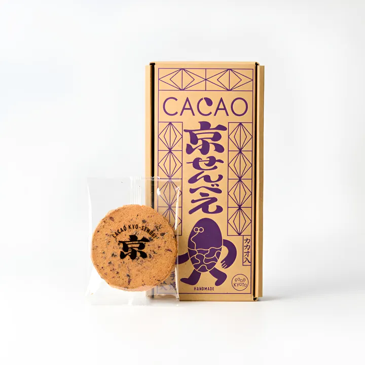 プチプチ食感のカカオハスク(カカオ豆の皮)と芳醇なカカオパウダーを練りこんだ、パリッと香ばしい京煎餅。ミネラル豊富な古代小麦をベースに、やさしい甘さのてんさい糖などを加え、100年以上受け継がれる伝統製法で職人が一枚一枚丁寧に焼き上げています。卵をあえて使用せず、カカオのやさしい甘みと小麦の香ばしい風味を生かした素朴な味わいが特徴です。ホッとひと息つきたい午後のおやつ時におすすめ。 〇「京菓子司 亀屋良長」がレシピ監修。カカオ香る、京都の新しい手土産品。 京都の老舗和菓子屋で、こころとからだにもやさしい京菓子ブランド「吉村和菓子店」も展開する「京菓子司 亀屋良長」がレシピ監修。卵をあえて使用せず、カカオと古代小麦の香りを生かしたGOOD CACAOのためだけのオリジナルレシピで焼き上げています。京都で昔から親しまれてきたほんのり甘いお煎餅に、ローストしたたっぷりのカカオが加わり、やさしい甘みと香ばしさ、プチプチ食感が新鮮な新しい京煎餅が完成しました。自分用のおやつとしてはもちろん、親しい方へのカジュアルギフトや京都の手土産品として、季節を問わずご利用いただけます。 〇風味豊かな美味しさの秘密は、2種類の異なるカカオハスク。 カカオ京せんべえには、粒度の異なる2種類のカカオハスク(カカオ豆の皮)を使用しています。チップ状のハスクはプチッと食感が楽しく、噛むほどにカカオの香りが口いっぱいに。パウダー状のハスクは、甘くて香り高いチョコレートのような風味と味わいを演出してくれます。 また、カカオハスクにはカカオポリフェノールや食物繊維も豊富。美容や健康にもうれしい、魅力たっぷりの素材です。 〇飲み物とのおいしい組み合わせ。 ・煎茶 カカオ京せんべえのほんのりとした甘みを煎茶の旨味や渋みがより一層引き立ててくれます。特にGOOD CACAOシリーズの「カカオ煎茶」との相性が抜群。 ・ホットミルク カオ京せんべえのほろにがさが、ミルクのまろやかさによって一層引き立ち、ちょっぴりビターなココアのような味わいを楽しめます。 ・白湯 カカオ京せんべえそのものの味をシンプルに、より一層感じられます。鼻に抜けるカカオの香りとやさしい口どけをお楽しみください。 〇人にも、環境にもやさしい製品づくり。 カカオハスク(カカオ豆の皮)を活用したカカオシリーズは、美味しいだけではなく、アップサイクルの取り組みも大切な目的の一つとしています。ビーントゥーバーのチョコレートを作る際、カカオ豆の約30%を占めるカカオハスクは、ほとんど活用されていません。そこで、カカオハスクに価値を見出したアップサイクルな商品を開発しています。その商品をご利用いただくことで、リデュース(無駄なごみの量をできるだけ少なくすること)に貢献。カカオを丸ごと仕入れることで、良質な生産にも繋がると、私達は考えます。 〇「GOOD CACAO」シリーズ。 顔の見える生産者から直接仕入れた上質なカカオの心癒される香り、味に深みを生む独特のコクや旨味など、カカオの魅力を余すことなく引き出した「GOOD CACAO」シリーズ。カカオのニブはもちろん、ビーントゥーバーチョコレートを作る過程で生まれる香味たっぷりのハスク(カカオ豆の皮)まで。「カカオのぜんぶ、まるごとおいしく。」をコンセプトに、カカオのアップサイクルにもつながる、心も体もホッとする“カカオ香るひととき”をお届けします。