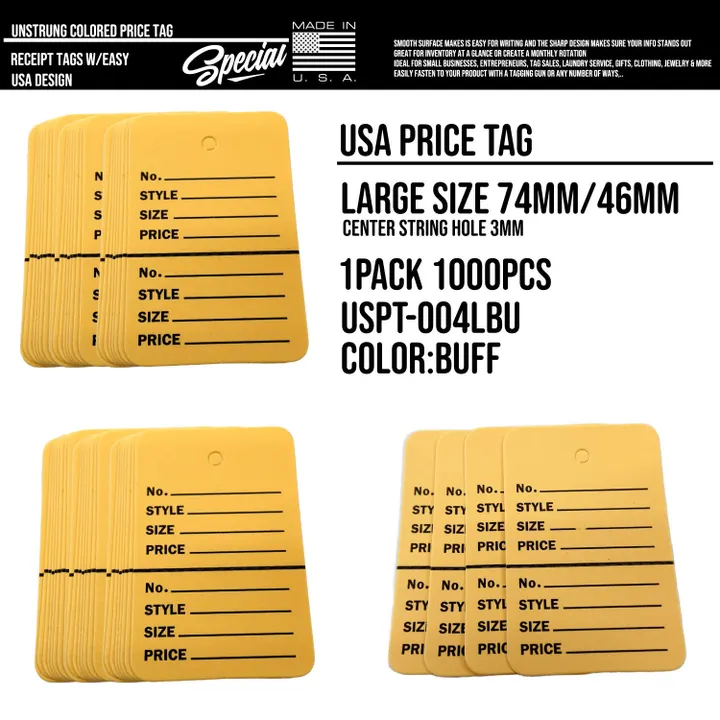 USA アメリカ プライスタグ 値札 下げ札 紙タグ カラータグ 価格タグ ビンテージ 古着 アパレル店 雑貨店 店舗用品 フリーマーケット イベント 1000枚入り : USPT-004 S BUFF 1000枚入り