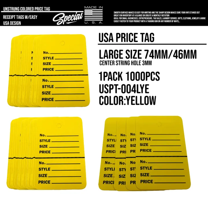 USA アメリカ プライスタグ 値札 下げ札 紙タグ カラータグ 価格タグ ビンテージ 古着 アパレル店 雑貨店 店舗用品 フリーマーケット イベント 1000枚入り : USPT-004 S YELLO 1000枚入り