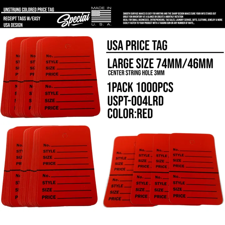 USA アメリカ プライスタグ 値札 下げ札 紙タグ カラータグ 価格タグ ビンテージ 古着 アパレル店 雑貨店 店舗用品 フリーマーケット イベント 1000枚入り : USPT-004 S RED 1000枚入り