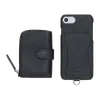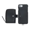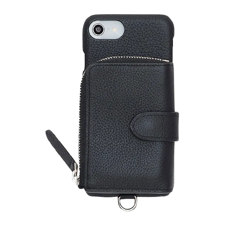 素材は、デミウルーボ の代名詞でもあるフランス産カウレザー。 L字ジップを開けると真ん中にコインスペースがあり、マチが広めで視認性と利便性を兼ね備えています。 コインスペースの両端には、カードや領収書などをドバッと入れることができるポケットがついており、 お札は三つ折り、もしくは4つ折りでしっかり収納できます。カスタムハードケースに装着できるようになっており、 シーンに合わせてスマホと財布をセットで持ち歩くことができます。 装着した状態でもそのままジップが開けられるようになっているので、取り外すことなく使用可能です。 単体としてももちろん、カスタムハードケースとセットでぜひご利用ください。 シンプルなデザインなので男女、年齢関係なくお使いいただけます。プレゼントにも最適です。 <カスタムハードケース> フランス産レザーを使った高級感あふれるレザーハードケース。 カード類を横から入れることができ、 ストラップでぶら下げても落ちないようにサイズ設計されています。 通常のクレジットカードなどは1枚、薄いカードは2枚入れることが可能です。