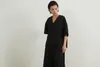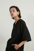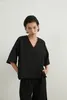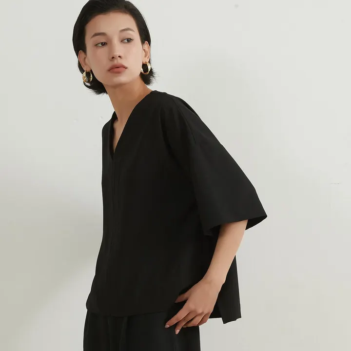 KNXT407・新色追加スラブ風速乾性シンプルVネックセンターシーム半袖トップ BLACK/FREE