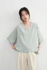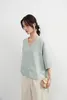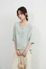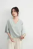 KNXT407・新色追加スラブ風速乾性シンプルVネックセンターシーム半袖トップ MINT/FREE