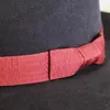 サイズ58cm、ブリム幅7.0cm アンテロープ ディープグレー センタークリース(クラウントップが凹んでいるタイプ) <特徴その1> アンテロープ とにかく驚くほど軽く、皆さん手にとった瞬間にびっくりされます。 手触りも柔らかく、上質であることがすぐに伝わります。 なのでかぶっているストレスを全く感じません。 <特徴その2> リボン シックにスタイリッシュに仕立てよく。 とても印象的な日本製ジャガードリボン(赤)をチョイスしました。 <この作品について職人から一言> 帽子を作る工程に「型入れ」というものがあります。 これは文字通り、木型に入れて帽子の形を作る作業なのですが、 「水入れ」「型入れ」「乾燥」の順に行います。 大量生産のものは一瞬で機械でプレスしておしまいです。 私たち帽子職人は帽体にまず「水入れ」をしたのち、木型に手で入れていきます。 帽子の形を決める工程で、手の感触を頼りに行う大事な作業です。 この後、天気にもよりますが3日間くらい乾燥させます。 もちろんプレスものは型に入れたまま乾かすことなどありません。 この時間が、帽子の型崩れを防ぐのに大事な時間になります。 手触りが柔らかく、何年も型崩れしない、そんな帽子を作るために、 とても大事なことなのです。 この帽子に限らず、手を抜かず、この作業を行なっています。 素敵な大人のための帽子に仕立て上がっています。