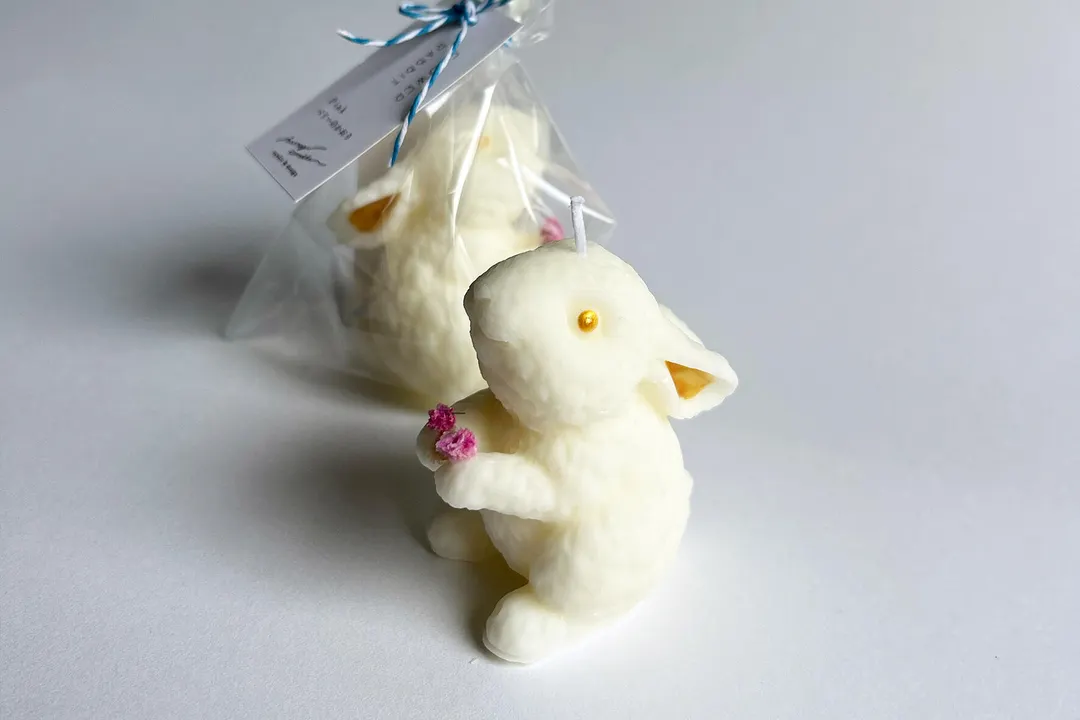 【天然素材で作られたキャンドル】 大豆を原料として精製され作られたソイワックスという、 植物由来のロウと、ミツバチの巣から精製された蝋(ロウ)である蜜蝋をブレンドした 天然素材のみを使用して作った、 手に小さなかすみ草を持つ小さなうさぎのアロマキャンドルです そこにあるだけでかわいいフォルムのうさぎは インテリアやちょっとしたギフトにもお勧めです 色や香りの好みで、お気に入りのうさぎを選んでいただければと思います 【季節のくまさん・FlowerRabbitのみの特別ラッピングのご案内】 +30円で、ラッピングを麻袋に変更できます ご希望の方は麻袋の商品をご希望の場合は必要な数量分、別途ご購入ください /////////////////////////////////////////////////// お好みのお花のカラーと香りを選べます 〈ピンクのうさぎ〉無香料 or ベリーの香り 〈ブルーグリーンのうさぎ〉無香料 or シトラスの香り 〈オレンジのうさぎ〉無香料 or りんごの香り 〈青紫のうさぎ〉無香料 or ラベンダーの香り ———————— size:横幅約55×高さ約65mm material:ソイワックス、蜜蝋、香料、綿芯、花材 燃焼時間:約5H(気温・空調・環境により異なる) ———————— Made in Japan ・・・・・・・・・・・・・・・・・・・・・・・・・・ 『ひいらぎキャンドルの〈natural〉シリーズ』 使用するロウは大豆、ヤシの木、ココナッツなど植物由来のワックス。 ススが出にくく身体にも環境にも優しい 安心・安全のキャンドルです。 好み、用途、シーンに合わせて 香りをチョイスしてください。 ただのシンプル、ナチュラルでは終らない、 可愛さを忘れないのがひいらぎキャンドルのナチュラルラインです。 ポイントに使用するのは、ミツバチから最終した高価な蜜蝋ワックスで作られた繊細なお花や、満開を迎え破棄される花束をドライフラワーにした、リユースの草花たち。 とっておきの灯になることは間違いありません。 ・・・・・・・・・・・・・・・・・・・・・・・・・・ ひいらぎキャンドルでは、 キャンドルは一点一点全て手作業で作成しています。 キャンドル本体の製作だけでなく、ラベルやパッケージのデザイン、シールの貼り付け、 梱包など、キャンドルが生まれるところから旅立つまでの間の全ての制作作業を 自身で行なっております。 【ご注意点】 ・お花の部分が非常に取れやすくなっております 取り扱いには十分ご注意ください <こちらの商品は受注生産になります> ・香りの良い新鮮なものをお届けする為、注文を頂いてからお作りしています ・1つ1つ丁寧に作成しておりますがハンドメイドの為に画像と同じ作品は作れません 手作業のため大きさに多少の誤差・お色味や形状が若干異なる場合がございます ・お客様よりご注文を頂いてから、すぐに製作に入らせて頂きます 途中でのデザインや素材など一切の変更、製作のキャンセルはお受けすることが出来ません ・注文日より1週間以内に発送しておりますが、 お急ぎの方・ご希望納期のある方は必ず事前にお知らせ下さい。 配送地域、交通事情、素材の在庫等の理由により遅延する場合がございます お届けまでに2週間ほどかかる場合もございます どうぞ余裕を持ってご購入くださいませ ○火を取り扱う製品となります。「attention」という注意事項を同封致しますので、 必ずお読みいただきご使用下さいますよう宜しくお願いいたします。 ※当店のキャンドルをご使用の上で起きた事故についての責任は負いかねます※ 予めご了承ください