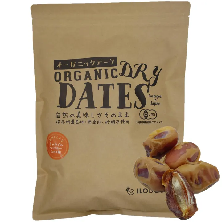天日干しにしたナツメヤシの実です。350年間続くサウジアラビアのデーツ農園で採れた、選りすぐりのデーツです。ミネラル、繊維など栄養素に恵まれています。 味の特徴:コラス種は、まるでキャラメルのような甘みと食感があります。 <サウジアラビア産プレミアム・オーガニック・デーツ> サウジアラビア有数のデーツの産地アルガットで350年の伝統をもつ生産者が、自家農園で有機栽培したこだわりのプレミアムなオーガニックデーツです。 しっとりふっくらした口当たり、そしてほのかな香りも感じられるデーツ好きの方にこそ召し上がっていただきたい日本では数少ない高級デーツです。 有機JAS認証(Kiwa BCS)を取得しており、日本では希少な品種を各種取り揃えています。 <デーツとは> デーツ(なつめやし)は、中東や北アフリカ、南アジアなどで一般的に栽培されている、果物の一種です。 アラビア半島近郊の砂漠地帯で紀元前6000年前から栽培されていおり、キリスト教の旧約聖書の「生命の樹」のモデルとされ、イスラム教の聖典コーランでは「神の与えた食物」として記載されています。 デーツは、筒状または細長い形をしており、茶色くしわがある外皮と、中に一つの大きな種を中心に柔らかく甘くて噛み応えのある果肉があります。 デーツは、お菓子の材料としても使用されることがありますが、一般的には非常に栄養価が高い食品として知られています。炭水化物、食物繊維、カリウム、鉄、マグネシウム、ビタミンB6など、様々な栄養素が含まれているため、身体に良い影響を与えます。 デーツの味は黒糖や干し柿、あるいは上質な焼き芋にも例えられる、後に引かないコクのある濃い甘さが特徴です。 天然の甘味料であり、砂糖やハチミツなどの代替品としても利用できます。 <原産国>サウジアラビア