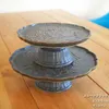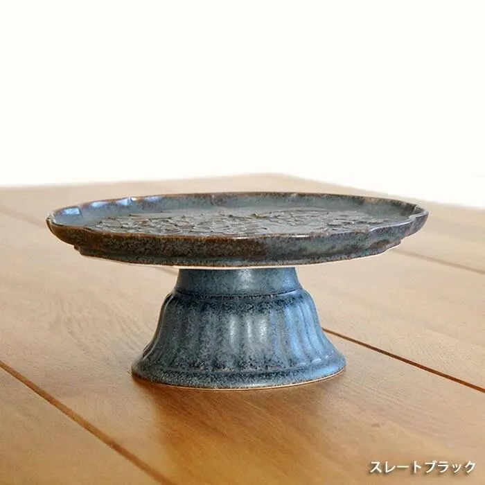 古い洋書からでてきたような、ちょぴりノスタルジー エンボスの効いたフラワーモチーフデザインでアンティーク感あふれるケーキスタンドです。 透かしてみると陰影により花びらのフォルムが一層際立ちます。 釉薬の効果により縁取りや花びら部分に錆のような褐色がみられ雰囲気をアップさせています。 落ち着いたアースカラーの3色でどちらもテーブルやほかのうつわとの馴染みが良いです。 こちらは磁器製で、重厚感あるしっかりとした作りです。 カラーは3色、アンティークホワイト・アッシュブルー・スレートブラックよりお選びいただけます。 カラーにより表面の質感が違い個性をだしています。 同シリーズでサイズ違いのケーキスタンドLのご用意もございます。 アンティークホワイト(表面ざらつきあり) アッシュブルー(表面ざらつきあり) スレートブラック(いぶし調なめらか)