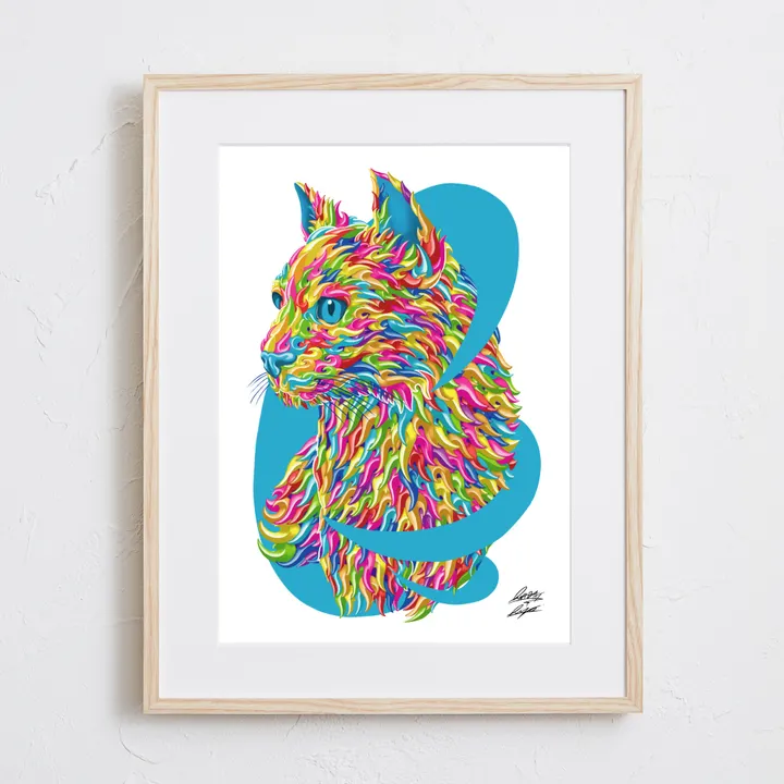 アーティスト -PROFILE- Madblast Hiro(ヒロ) 岐阜県出身。ライブペインター / アーティスト 2021年には大阪府の貝掛中学校の皆様と長さ230mの壁画を制作。 岐阜駅前の繊維問屋街では高さ16mの壁画を制作の他、G-SHOCKやSONY、BETONES等に作品提供を行う。 独自の模様をブロックのように積み上げる表現を突き詰める。 【作品について】 カラフルな色使いはMadblast Hiroの得意とする表現方法の一つ。 動物で人気の猫を大胆に、その配色に目を奪われてしまいますよね。 作品名:Mad Cat 手法:イラスト、デジタル ペーパー:高品質半光沢紙 マットカラー:白 マット*:DXホワイト芯 100%バージンパルプ/PH7・中性紙(2mm厚) ※全てのアートにマットがつきます フレームカラー:黒、白、無垢(3種類から選択) ※マット付のため通常とはフレームサイズが異なる規格となります。 【マット*とは?】 アートポスターの周りに挟んだ厚紙の事。 マットを使わない時に比べ余白により広がりが生まれ、作品の新たな一面を引き出せ作品の見栄えがグッと良くなります。また、額縁のガラス面と作品が直接触れたままにしておくと、くっついて作品を傷つけることがあります。マットを使用することでガラスと作品の間に空間ができ、作品を保護することができます。ブランドコンセプトにより全てのアートにマットがつきます。 ー ファッションのようにアートを ー 私達が掲げるコンセプトです! 毎日着替えるファッションの様に、アートも気軽に飾り変えて欲しい... 一旦飾り終えたアートにも光を当ててほしい... ポスター単体、またはリピートで中身だけのポスターを購入された方に"専用のハンガー"をセットでお届け。 「今までに無い!新しいアートの飾り方を提案」 飾る事がなくなった前のアートをハンガーにかけて洋服と一緒にかけてもらう。 その日の気分や、モチベーションですぐに取り換えられる様に。 もちろん、魅せる収納としても今までにないおすすめの飾り方です。