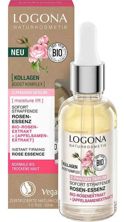 潤い・ハリ弾力アップとプレエイジング、集中ケアのための角質層を潤いで満たす二層式の美容液。心地よいハリ感をもたらし、ふっくら、思わず触れたくなるお肌に導きます。少し青い爽やかなローズの香り。 ○肌タイプ:乾燥・敏感~プレエイジングケア(年齢に応じたお手入れのこと) ○使用方法:朝夕の洗顔・化粧水の後、よく振ってから3~5滴を手のひらにとり、やさしく塗布してください。その後はクリームをお使いください <Key成分> ○オーガニック ダマスクローズ ローズエキスには、肌の水分バランスを整え保湿します。ローズエキスは肌に潤いを与え、柔らかく、しなやかで滑らかな状態に保ちます。また、ナチュラルなローズに含まれる複雑で自然な香りには心を落ち着かせ、リラックスさせる効果があります。 ○リンゴ種子エキス 大変パワフルな成分です。肌にハリを与えるだけではなく、保湿や水分補給効果があると言われています。アミノ酸やミネラル塩などが含まれ、高い保湿力があります。。 【モイスチャーリフト】 ロゴナのモイスチャーリフト<ローズ>シリーズは、自社抽出のオーガニック ローズエキスとハリと弾力をもたらすオーガニック リンゴ種子エキスのコンビネーションでお肌を心地よく整えます。乾燥しがちなお肌、敏感に傾きがちなお肌に集中的に潤いを与え輝くようなお肌に整えつつ、ハリ弾力をサポートしふっくらと仕上げますのでエイジングケア*におすすめです。 *年齢に応じたお手入れのこと 【認証】 ナチュラル・オーガニックコスメ第三者認証 NATRUE ------------------------ ロゴナは1975年に薬草療法士(植物療法士)のハンス・ハンゼルと仲間達がドイツで初めてのオープンしたオーガニックショップから始まりました。 <ロゴナの品質> ●石油由来成分(界面活性剤、色素、パラフィン、シリコン、PEG、など)は使用しません ●石油由来の防腐剤(パラベン、フェノキシエタノール)は使用しません ●世界で最も厳しいレベルのナチュラル・オーガニック第三者認証 Natrue取得 ●ドイツの伝統から生まれたナチュラルコスメです ●ヴィーガン製品をご用意しています ●動物実験に反対しています ●高品質なオーガニック原料を自社でエキスに抽出し配合しています ●100%再生エネルギーのサステナブル工場で製造
