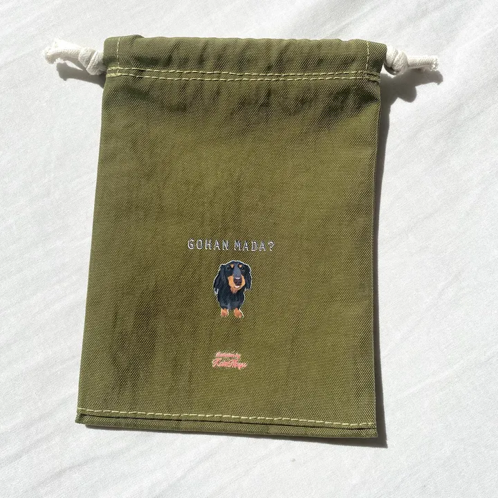 【厚手巾着】 オリジナルイラスト わんこモチーフ 巾着 厚手生地 クリスマスプレゼントにも◎ ミニチュアダックス / ナイロン
