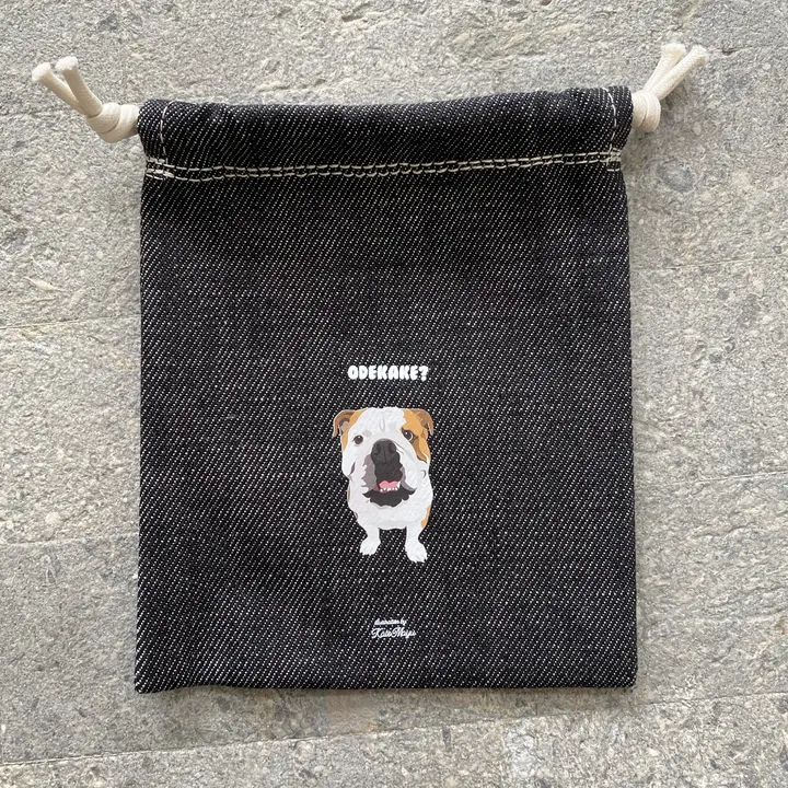 【厚手巾着】 オリジナルイラスト わんこモチーフ 巾着 厚手生地 クリスマスプレゼントにも◎ イングリッシュブルドッグ