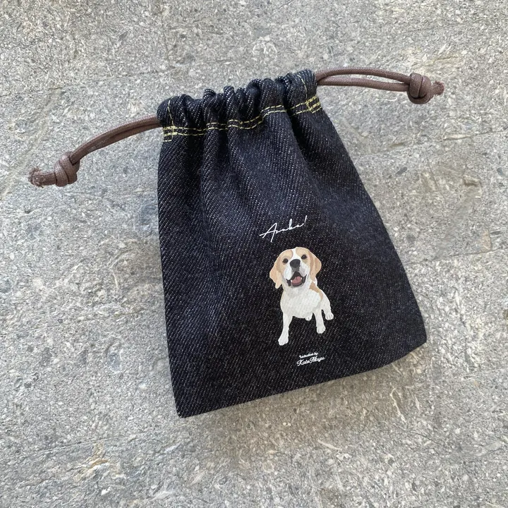 【厚手巾着】 オリジナルイラスト わんこモチーフ 巾着 厚手生地 クリスマスプレゼントにも◎ ビーグル