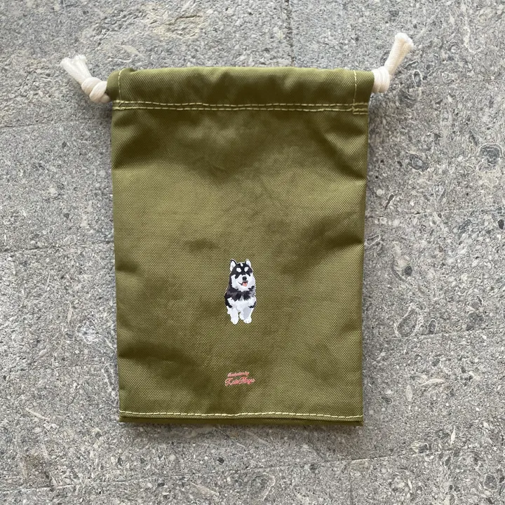 【厚手巾着】 オリジナルイラスト わんこモチーフ 巾着 厚手生地 クリスマスプレゼントにも◎ シベリアンハスキー / ナイロン のコピー