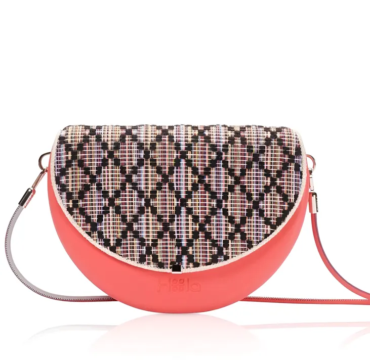 ◆いつもの日常に彩りをもたらしてくれる三日月型ショルダーバッグ。インパクトのあるピンクは、ブラックのダイヤ柄と相性が良く、程良いスパイスが効いている組み合わせ。一味違うアクセントを取り入れたい時にピッタリです。ハーフムーン(半月)型ショルダーバッグです。 ■構成部品 Frame:Pink Punch Shoulder:Tubolare - Stone Ruby Chiara In-Bag:Black ZigZag