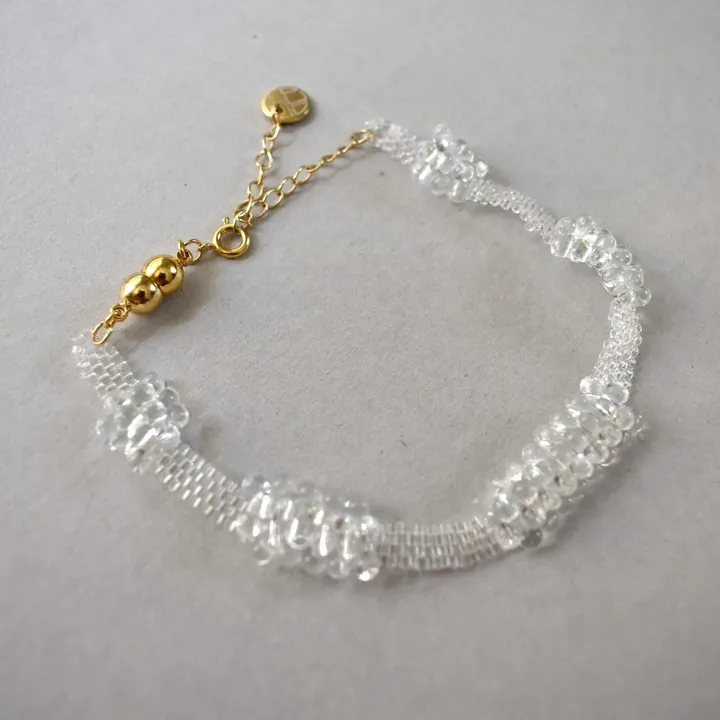 これ以上分けることのできない最も基本的な粒子 すべての物質や力は この素粒子とその相互作用によって成り立っています おなじ素粒子の組み合わせでも 配置やつながり方によって “人間” や “木” や “水” になったりします 人間という “複雑な生命” も 突き詰めると 単純な最小の粒(素粒子)の集合体でできていると言えます 世界を感じる主体である私たちは 複雑な物理現象の結果でしかありません “配置=意識” と “構造=感情” 科学と哲学の境目で 我々は何を思考し何を綴って生きていくのか --- 透明なガラスビーズのみを使用し 清らかにお仕立てしました 金属ビーズを使用していないため 肌あたりも柔らかです material ガラスビーズ、真鍮、マグネット、テグス *留め金具はマグネットタイプを使用しております size 約180㎜+アジャスター50㎜ weight 約8.5g *CACICOの商品は全て1点1点制作しているため、個体差があり、商品写真と差がある場合がございます。ご了承の上、ご購入ください。 *金属アレルギーの方はご使用をお控えください