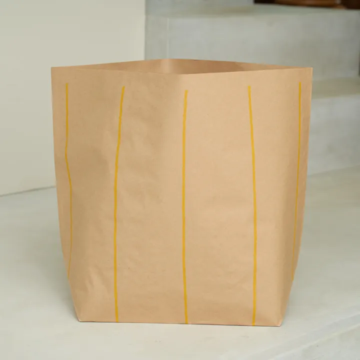 米袋の防湿性、通気性、強度を備えたじょうぶな収納袋です。 お米が育つまでの6か月間、 米袋はほとんど製造されません。 スタックストーは米袋の製造工場で働く人たちと米袋の新しい価値を考えました。 米袋は扱う人の安全や作業性を考えて国の基準で厳しく管理されており、 特殊な紙の3層構造でできています。 水に強く、軽い素材が特徴です。 米袋特有の機能性を活かしながら、紙素材特有のカジュアルな魅力を引き出しました。 植栽のカバーや、汚れた衣類、生活感が出てしまう場所の目隠しなど、 用途や置き場所を選ばず使えて、空間にリラックスした抜け感を生み出します。 100%紙素材で作られています。