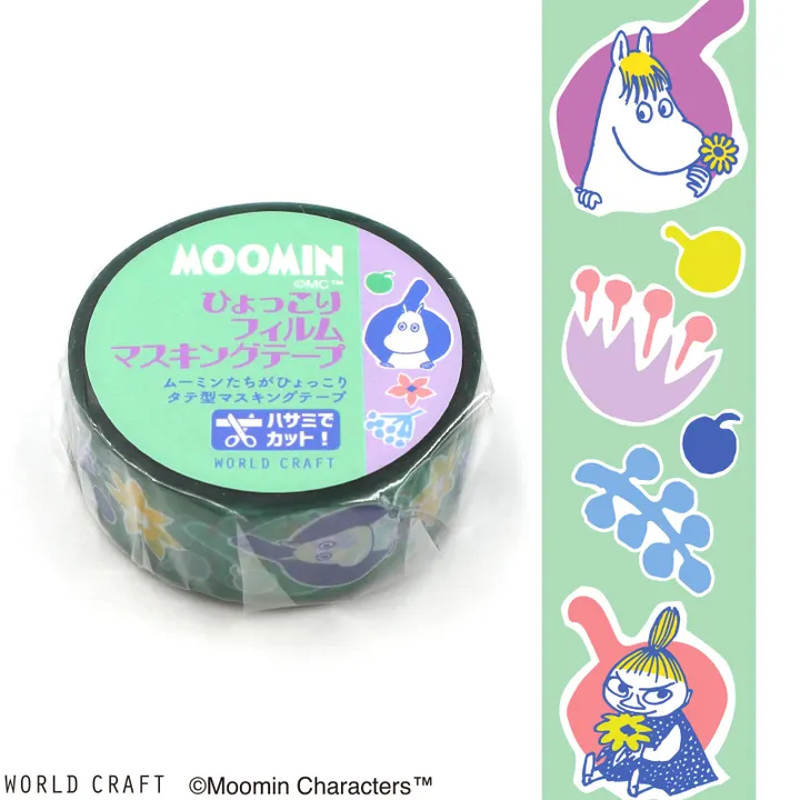 【ムーミン フィルムマスキングテープ  Flower LG】 ◎手帳の端に貼るだけでムーミンたちがひょっこり  こちらを覗いているようにみえる、珍しいタテ柄の透明なクリアテープです。  手帳やノートはもちろん、ボトルやスマホカバーなど  身の回りのアイテムをにぎやかにしてくれます♪ 【オススメデコ例】 ・手帳やノートの端に ・シンプルな一筆箋や封筒のデコレーションに ・クリアファイルの端に ・紙の両側から貼り付け、ノートの付箋として 【ムーミンフィルムマスキングテープ ラインナップ(全8柄)】 ・Woods / MOFM15-011 ・Garden / MOFM15-012 ・Grass / MOFM15-013 ・Going / MOFM15-014 ・Flower ライトグリーン / MOFM15-015 ・Flower ブルー / MOFM15-016 ・Flower クリア / MOFM15-017 ・Flower パープル / MOFM15-018   --------------------------------------------------------------------------------------- ◇◇ 横からひょこり日常を覗く 『ムーミンひょっこり stationeries』 ◇◇ ムーミンの世界に広がる木や花々からひょっこり飛び出すムーミンとなかまたち♪ そんなムーミンたちが私たちの日常を彩るステーショナリーシリーズが登場!! ◇◇ ムーミン商品ラインナップ ◇◇ ☆新商品☆ ■フィルムインデックスシール第2弾(5柄) < ムーミン / リトルミイ / スナフキン / ニョロニョロ / スティンキー > ☆新商品☆ ■フェイスシリーズ フレークシール(4柄) < ANGRY / HAPPY / ENNUI / THINKING > ☆新商品☆ ■フェイスシリーズ シートシール(4柄) < ANGRY / HAPPY / ENNUI / THINKING > ■マスキングテープ(8柄) < ボーダーピンク / ボーダーグリーン / ボーダーブルー / まるパープル /   森 グレー / ケーキ グリーン / フラワーブルー / フラワーオレンジ > ■フィルムマスキングテープ(8柄) < Woods / Garden / Grass / Going  /   Flower ライトグリーン / Flower ブルー  / Flower クリア / Flower パープル > ■キラキラフレークシール第1弾(8柄) <ムーミン / リトルミイ / スナフキン / Sのおじょうさん /   ミムラねえさん / トゥーティッキ / ニョロニョロ / スティンキー> ■キラキラフレークシール第2弾(8柄) < ムーミンとSのおじょうさん / リトルミイときょうだい / ムーミンとスナフキン /   ムーミンPとムーミンママ / ともだち / ニョロニョロ2 / スティンキーとスニフ /   Kユールとスクルッタ> ■養生テープ(4柄) < 森 / 草原 / 原野 / 雲> ■フレークシール(8柄) < 森とムーミンA / 森とムーミンB / ムーミンパーティーA / ムーミンパーティーB /   なかまたちA / なかまたちB / ミイがいっぱい / シルエット >        ■フィルムインデックスシール第1弾(2柄) < しかく / まる > ■ペーパーインデックスシール(2柄) < おおきい / ちいさい > ■リングノート(2柄) < 森 / ボーダ > ■メモパッドA7(2柄) < 木グリーン / いたずらピンク > ■箱シリーズ  ・A4サイズ(ぶどう畑 / はな )  ・カードサイズ(はなつみ / さんぽ / さがしもの / 釣り )  ・プチサイズ (ファミリー / リトルミイとミムラねえさん /            スナフキンとニョロニョロ / ムーミンとSのおじょうさん )  ・ポストカードサイズ(森 / 読書 / さかだち / みずうみ ) ■什器セット などを出品しておりますので、そちらのページもご覧ください♪