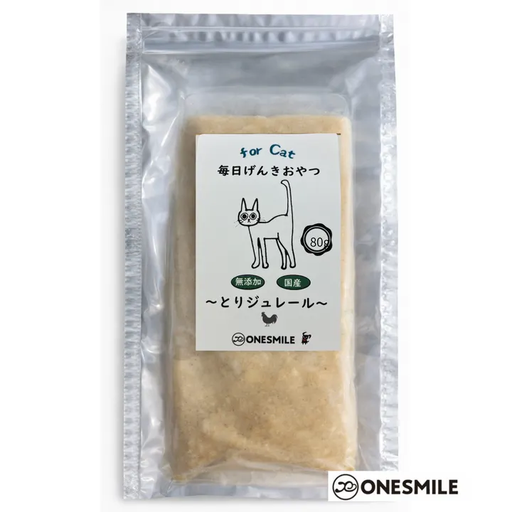 そのままでも、ごはんにかけても、スープにもアレンジ。 食べ方で選ばれる“無添加ジュレ” 兵庫県産平飼い赤鶏を主原料に、 にんじん・かぼちゃ・小松菜(兵庫県産)をはじめ、 国産トマト・キャベツ・いんげん、 茨城県産さつまいもなど、 厳選した国産素材のみを使用。 添加物は一切使わず、 素材そのものの旨みを活かして、 じっくり煮込み、 栄養と風味をそのままジュレ状に閉じ込めました。 スプーンでそのまま与えるのはもちろん、 水で薄めてスープ仕立てにすることで、 シニアの猫ちゃんにもやさしく食べやすい設計。 さらに、袋のまま与えて“ぺろぺろなめる”食べ方も可能。 手を汚さず与えられる手軽さと、 猫ちゃん自身が楽しめる与え方としても支持されやすいポイントです。 また、いつものフードに“かけるだけ”で、 香りと旨みがプラスされ、食いつきの変化を実感しやすく、 トッピング提案としても非常に展開しやすい商品です。 ・かける/のばす/そのまま/袋から直接と、多彩な与え方が可能 ・食いつき対策提案として即導入しやすい ・スープ/トッピングで客単価アップに貢献 ・無添加×国産素材で安心志向の顧客に訴求 売り場で“説明しなくても伝わる”シンプルさと、 リピートにつながる実用性を兼ね備えた、 新しいジュレタイプのごはん提案です。 ・「ぺろぺろ派にも、かける派にも」 ・「袋のままでも、ごちそう時間」 ・「与え方で選ばれるジュレ」 ・「手軽さも、食いつきも、これひとつ」