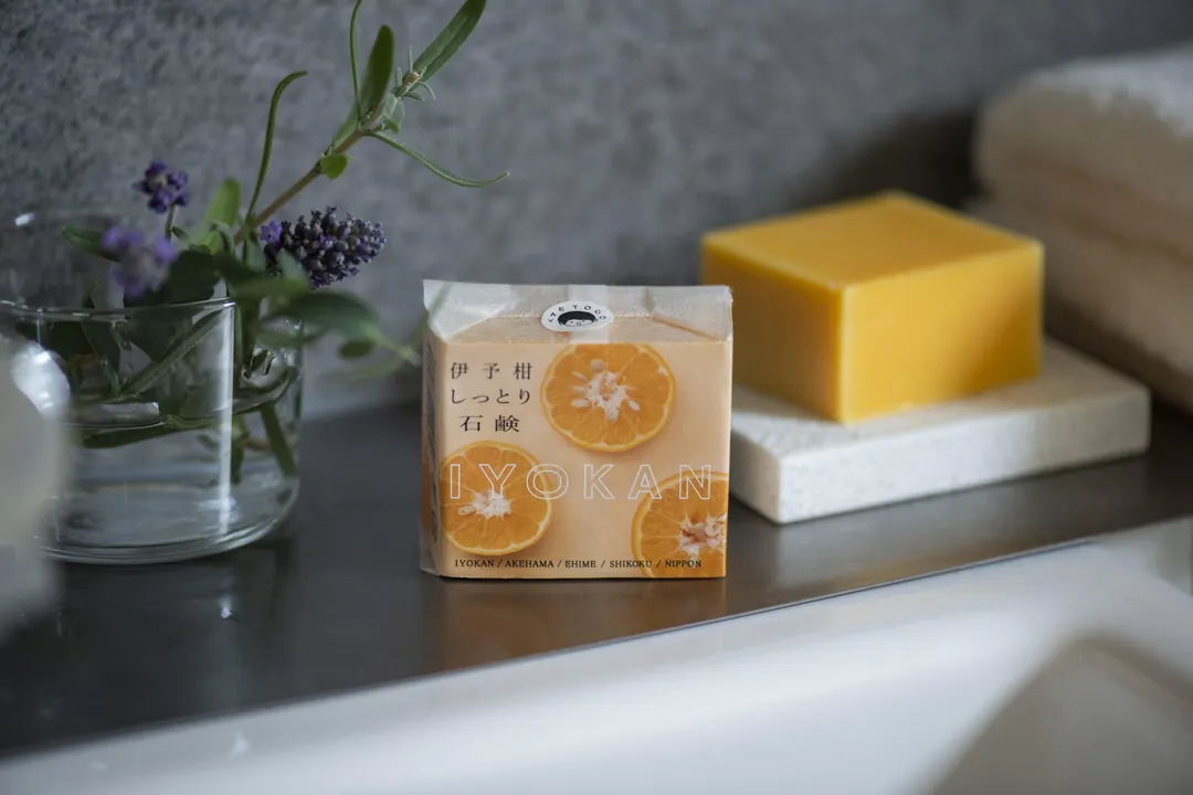【しっかり泡立ちしっとり潤う、伊予柑の香り豊かな手作り石鹸】 無茶々園の生産者が育てた伊予柑の果皮から抽出した精油(※1)と蒸留水(※2)を使用した、香り豊かな手作り石鹸です。果汁を搾ったあとの果皮を活用し、「畑でできたものを余すことなく」をコンセプトに、アップサイクルなアイテムとして仕上げました。保湿成分として真珠由来のパール(※3)を配合し、洗い上がりの肌にしっとりとしたうるおいを与えます。 ※1 イヨカン果皮油(香料) ※2 イヨカン果皮水(保湿成分) ※3 パール(保湿成分) 【コールドプロセス製法で、やさしく仕上げました】 熱を加えず、時間をかけて熟成させる「コールドプロセス製法」で製造。反応熱のみでゆっくり石鹸を作ることで、植物由来の保湿成分を石鹸に残しやすくしています。きめ細やかでクリーミーな泡立ちが特長で、顔にも体にもお使いいただけます。 【香りと原料へのこだわり】 柑橘の香りを生かすこと。それは柑橘の産地である無茶々園が、長年大切にしてきた想いです。 「伊予柑しっとり石鹸」には、伊予柑の果皮から抽出した精油と蒸留水を香りづけ・保湿成分として使用。天然由来のやさしい香りが、バスルームにふんわりと広がります。石油由来成分、合成香料、合成着色料は不使用。素材の力を活かして、肌へのやさしさにこだわりました。 【こんな方におすすめ】 ・合成香料・合成着色料を避けたい方 ・天然由来成分の石鹸を探している方 ・洗い上がりのしっとり感を重視したい方 ・柑橘を活かした製品に惹かれる方 ・サステナブルな製品を日常に取り入れたい方 【サスティナブルコスメアワードにて、最高賞「ゴールド」を受賞】 人と地球にやさしいコスメを表彰する「サステナブルコスメアワード2021」にて、製品部門の最高賞「ゴールド」を受賞。 製品の品質に加え、無茶々園が取り組む持続可能な農業や地域づくりの姿勢も高く評価されました。 https://sustainableaward.jp/cosme-archive/2021/gold2021/ 【使用方法】 よく泡立てて、やさしく肌を洗ってください。顔・体どちらにもご使用いただけます。