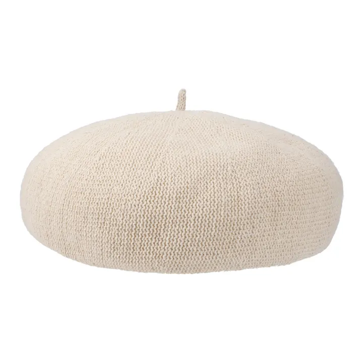 軽くて涼しげなコットンサーモ糸を使用したベレー帽。通気性が良く型崩れしにくい、全体的にくすんだニュアンスカラー。柔らかいのにハリがある丸いシルエットにちょぼが付いています。