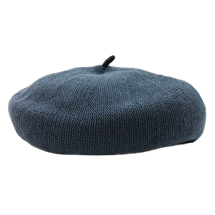 軽くて涼しげなコットンサーモ糸を使用したベレー帽。通気性が良く型崩れしにくい、全体的にくすんだニュアンスカラー。柔らかいのにハリがある丸いシルエットにちょぼが付いています。