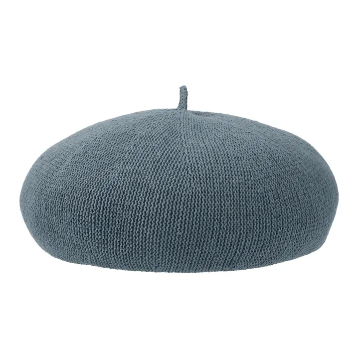 軽くて涼しげなコットンサーモ糸を使用したベレー帽。通気性が良く型崩れしにくい、全体的にくすんだニュアンスカラー。柔らかいのにハリがある丸いシルエットにちょぼが付いています。