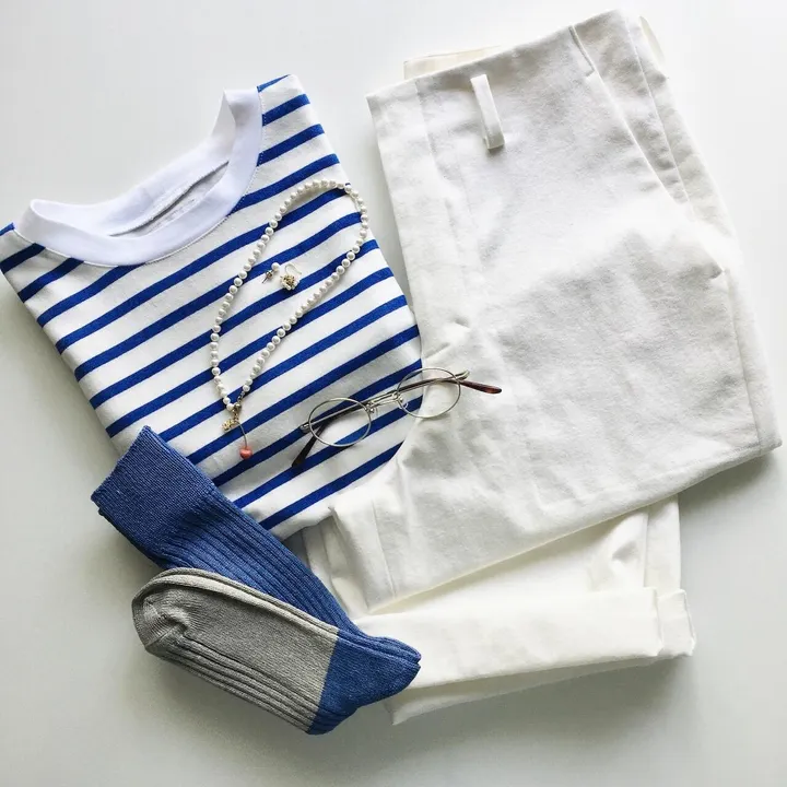 - 40代。体型の変化に向き合って隠さず魅力全開に。美脚ラインを追求したパンツ。 - 女性は40代を迎える頃から、多かれ少なかれ、体型の変化に誰しも気がつくものです。 特に如実に変化が現れるのは、お腹周りとヒップ周りです。そして、服作りをする者から見る限り、正面からのシルエットではなかなかその変化に気がつかない場合もあります。 最も良くわかりやすいのは、横から見たシルエットと後ろの姿です。後ろ姿はとくに自分では気がつきにくいものですが、他人から見られる姿ですので、気にかけたいものです。 そこで、JOURS LE BALLONの定番商品として、「40歳からのカーゴパンツ」なるものを制作しました。  まずは下がったヒップの位置を美しく見える位置に設定し、ぽっこりしがちなお腹周りを目立ちにくい程度に股上の深さを調整。 ハイウェストよりは少し浅めのミドルライズ。そして何より強くお伝えしたいのは、"ゴムウェストにサヨウナラ。" ゴムウェストは確かに変化した体型には救世主のようなパンツです。 巷でも今や20代向けの商品でも多くのパンツがゴムウェストとなっています。でも、ゴムウェストに頼ると、とめどなく身体は締まりのない体型へと変化し続けます。脱力してストレスフリーな時間は必要です。でも、“おしゃれ”をする上では多少の負荷がその人を輝かせてくれます。きちんと身体にあったパンツを履いて、しばらくそのパンツが履ける体型維持を心がけて、また変化したら少しづつシフトしていく。そんなおしゃれが人生100年時代のファッションとの向き合い方。経年変化する身体と向き合った商品をご提案します。