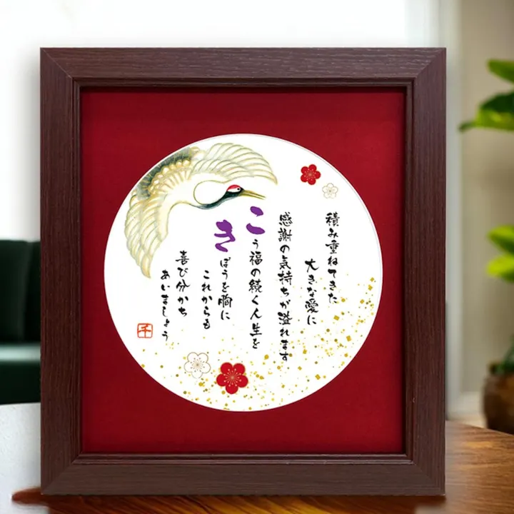 古希 七十歳 節目のお祝いに 想いを伝える感謝の贈り物 お父さん お母さん おじいちゃん、おばあちゃん 大切なあの人へ 「ありがとう」って、いつもは言えないけれど 感謝の気持ちを伝えたい おめでとう!長生きしてね!ずっと仲良く幸せに! そんな想いにピッタリな心温まる メッセージポエムのプレゼント 梅は生命力の強さから病気を退ける花と言われています おめでたい鶴のイラストとともに、お祝いの気持ちをより一層伝えてくれます 【商品情報】 作品はプリント品です(直筆ではございません) 額:ガラス&木製 スタンド:木製 白い化粧箱入り 壁掛け、立てかけも可能 【サイズ】 額の外形:30×31×1cm 内径:24×27cm 【色紙サイズ額色】 茶色 ※当商品は古希を迎えられる方に贈られるギフトです。 ※お届け商品には金額などお買い上げに関する伝票はお付けしていません。 ※ガラス製ですのでお取り扱いはご注意ください。 ※商品画像については、モニターによって色味が若干異なります事ご了承ください。 【贈る方】 自分 両親 お母さん お父さん おじいちゃん おばあちゃん 祖父 祖母 友人 パートナー 父 母 旦那 夫 妻 嫁 先輩 同僚 上司 友達 家族 男性 女性 【用途】 長寿祝い 喜寿 贈り物 感謝 ギフト 周年記念 サプライズ 応援 お祝い 記念日 誕生日