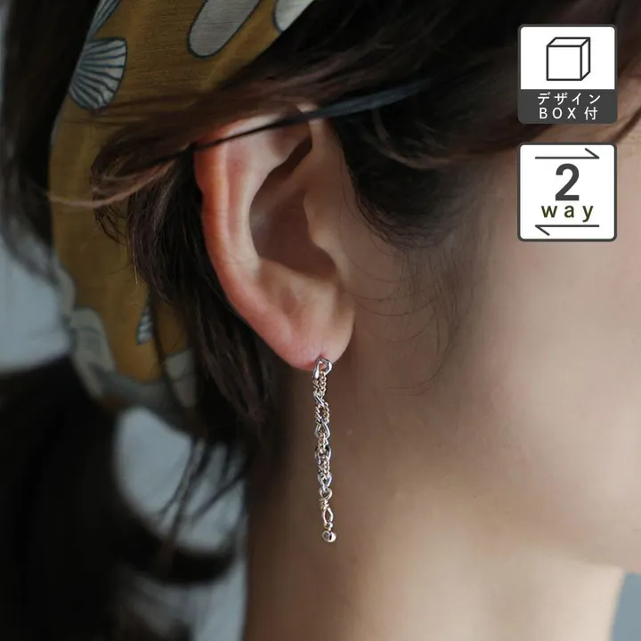 繊細なチェーンを絡ませた2WAYピアス