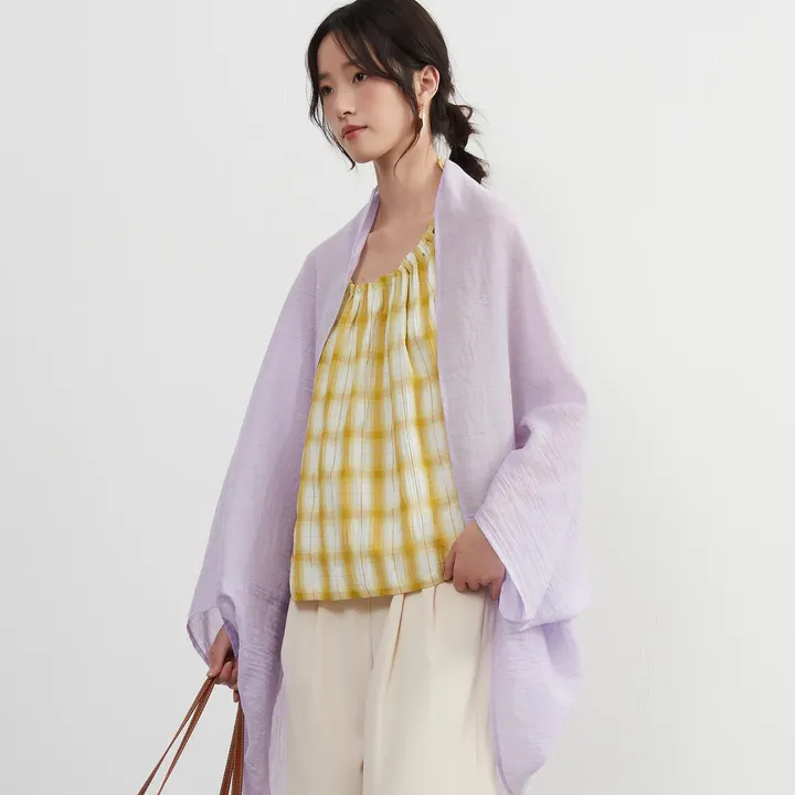 KNXS514・2WAYシアー綿混カーディガン・ストール・羽織り陽射し対策・たためて収納便利 PURPLE/FREE