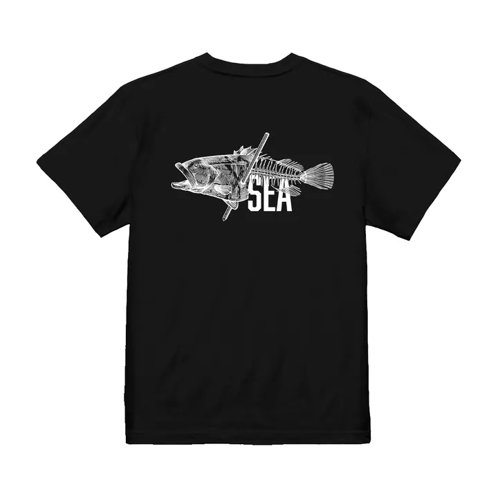 クエTシャツ サイズ: SかM からお選びいただけます。 前面にマサルが潜っているシルエットを、背面にはクエのビッグシルエットをデザインしました。普段でもオシャレに着こなしていただけます。黒色のみの販売となります。