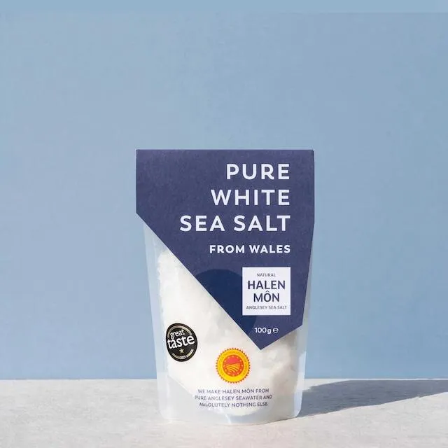 【英国産海塩】HALEN MON / ピュアホワイトシーソルト【フレーク】 100g パウチ入り
