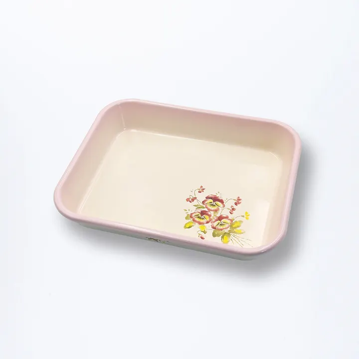 【imane premier】クリーム地にピンクの吹きが優しいバット。 下味や揚げ物の衣つけ、調味料や野菜を並べておく時に大活躍。専用の道具があるだけで普段のお料理も楽しくなります。 ホーロー製のためオーブンや直火にも対応しています。バットを使ってオーブンでできるちぎりパンやプリン、直接火にかられるのでグラタンやパイシチューは焼くところからバット1枚で行えます。 フタが付属しているため調理後に冷蔵庫で保存も◎。そのままテーブルに出せる可愛らしいデザインなので大皿料理やホームパーティーにもぴったり。 においの付きにくいホーロー製で清潔に。道具も、器もこれひとつ。 【ホーロー(琺瑯)の特徴】 金属とガラス、全く違う素材を結合させたホーローはそれぞれの良い面が生かされ、「ホーローならでは」の優れた特徴があります。 ・優れた耐久性、耐熱性、耐酸性 ・においが付きにくく抜群の非吸着性、清潔感 ・高い保温性で熱を逃さない ・美しい色合いと光沢が魅力 ■商品について イマンの商品はアンティークのような柄をほどこしている手作りの商品になります。 手作業で一つ一つ丁寧に柄つけておりますが、角度や位置等に若干の差がございます。 ■ホーロー製品 対応熱源:オーブン ※電子レンジ不可 ※加熱中や加熱直後は大変熱くなり火傷の危険がありますので、必ずミトンやふきん等のご使用をお願いします 【下記の場合は不良品ではありませんのでご注意ください】 ・ホーローの溶接部分や縁などに出る黒い部分は下地のホーローです。この部分はホーローがかかりにくいためこの様になります。 ・ホーローを焼く時に吊るすため、吊るしたあとが残る場合があります。 ・焼く際に細かな黒い点がつく場合やピンでつついたような小さな陥没がある場合もございますが、ご了承の程お願いいたします。 ・釉薬がかかりにくい部分は色ムラや凸凹、フタのズレ、素材や下釉薬が見られることがあります。 ・付属品の木ブタやポリプロピレンのフタは大量生産品につき細かな傷がある場合がございます。 ■手作りのため若干サイズが変わる場合があります。 ■撮影環境の関係上、実際の色と多少異なる場合があります。 ■販売商品以外のアイテムは付属しません。 ■他サイトにも掲載しています。在庫状況が変動する場合があります。 ■在庫数以上をご希望の場合は、お気軽にお問い合わせください。 ■商品は予告無く欠品・廃番となることがございます。ご了承ください。 ■イベント出展、夏季・冬季休業時は出荷予定日より長くかかってしまう場合がございます。  (お知らせにて掲載します。ご確認ください。)