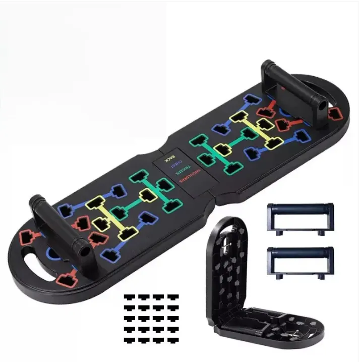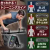 【全米で話題のトレーニングボードが日本上陸!】 腕立て伏せが変わる。フォームが変わる。 今、アメリカで話題の「プッシュアップボード」がついに日本上陸。 正しいフォームを自然に身につけ、胸筋・肩・背中・腕をしっかり鍛えられる多機能筋トレ器具です。 【自宅が本格ジムに変わる!選べる2タイプ】 ■ プッシュアップボードのみセット ・プッシュアップボード本体 ・ハンドル2本 ⇒ 腕立てトレーニングに集中したい方、まず試してみたい初心者におすすめ ■ フルセット ・プッシュアップボード本体+ハンドル ・レジスタンスバンド(6本) ・腹筋ローラー(アブローラー) ・拡張バー ・握力グリップ ・ドアアンカー ・ジャンプロープ(縄跳び) ・収納袋 ⇒ このセットひとつで、上半身・下半身・体幹・有酸素まで全身トレーニングが可能。 場所も器具も取らず、家トレを効率的かつ本格的に。 ジムに通わず、これ1セットで“ジム級”のトレーニングが完結します。 【使い方はシンプル|差し替えるだけで鍛えたい部位に効く】 ・色分けされたガイドポジションで正しいフォームを再現 ・手幅・角度を変えるだけで胸・肩・背中・腕に効果的 ・折りたたみ収納OKで、省スペース設計 ・テレビを見ながら“ながらトレ”も可能 【これひとつでできるトレーニング種目】 ・腕立て伏せ(プッシュアップ) ・腹筋ローラーで腹筋・体幹強化 ・レジスタンスバンドで二の腕・肩・背中を引き締め ・拡張バーでスクワット・ショルダープレス等 ・縄跳びで脂肪燃焼・心肺機能アップ ・握力グリップで前腕&握力強化 ・ドアアンカーでラットプルやプル系種目にも対応