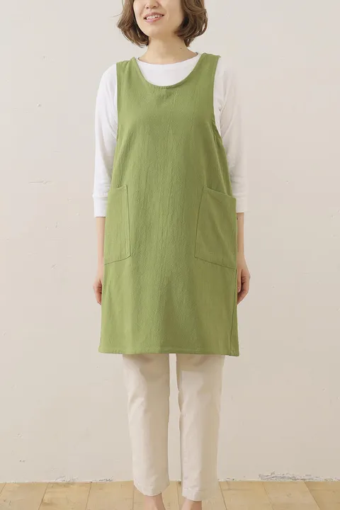 ウォッシュドコットン クロスオーバーエプロン 4 グリーン