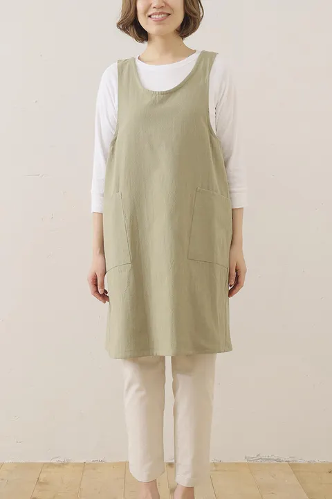 ウォッシュドコットン クロスオーバーエプロン 14 ドライハーブ