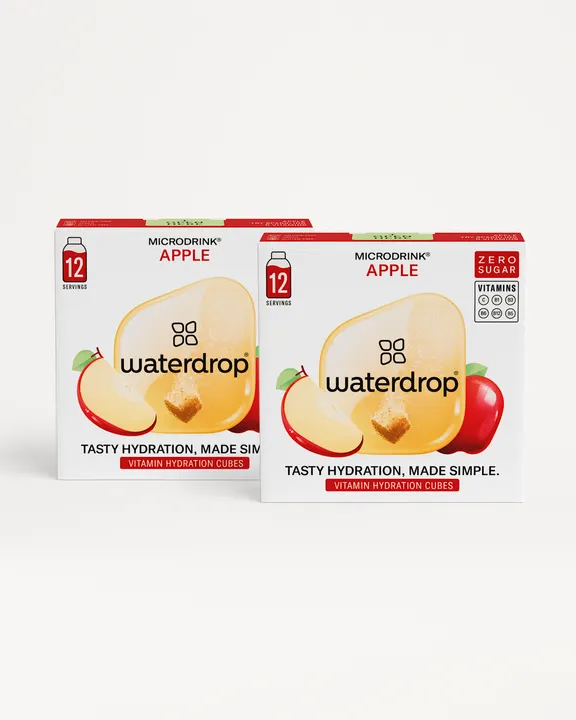 24個入り・ビタミン配合・砂糖不使用 天然エキス 栄養価の高いビタミン 砂糖不使用 ヴィーガン ローカロリー ドイツ製 商品説明 フレッシュさ2倍のアップルツインパック。爽やかジューシーな味わいで、毎日の水分補給が楽しく! 最高品質の果実エキスとビタミン waterdrop0 マイクロドリンク アップルツインパック 24個入り ・天然の果実&植物エキス使用 ・ビタミン配合 ・ローカロリーでヘルシー ・砂糖不使用 ・人工保存料不使用 ・グルテンフリー ・ヴィーガン対応 原材料および栄養成分情報 リンゴ果汁パウダー、甘味料、ビタミンを配合した、爽やかなドリンクが作れる発泡キューブ 平均栄養価 500 ml 当たり エネルギー 4.7 kcal タンパク質 0 g 総脂質 0 g 炭水化物 0.2 g 食塩相当量 0.2 g ビタミンC 20 mg ナイアシン 4 mg パントテン酸 1.5 mg ビタミンB1 0.28 mg ビタミンB6 0.35 mg ビタミンB12 0.63 0g イヌリン、りんご粉末(りんご乾燥物、りんご果汁乾燥物)/酸味料、pH調整剤、香料、甘味料(スクラロース)、着色料(カラメル、カロテノイド)、炭酸Ca、ビタミンC、ナイアシン、パントテン酸Ca、ビタミンB6、ビタミンB1、ビタミンB12 25,2g(2,1g 012個分) waterdrop0の使い方 水をもっと飲むためのシンプルな3つのステップ: WATER: 400-600mlの冷水 DROP: キューブを溶かす ENJOY: 爽やかでフルーティーな水を楽しむ サステナブルな飲み物の選択 waterdrop0なら最小限のパッケージで、500mlペットボトル飲料と比べて プラスチックを最大98%削減。 1. 天然エキス. 2. 栄養価の高いビタミン. 3. 砂糖不使用. 4. ヴィーガン. 5. ローカロリー. 6. ドイツ製. みんなに愛されるフルーツ、りんご。 ジューシーでフレッシュ、ひと口ごとにシャキッと気分をアップしてくれる。 お仕事の合間にも、リラックスタイムにも、りんごのやさしい味わいをお楽しみください。
