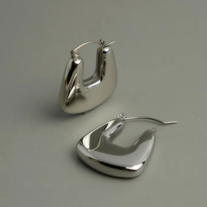 金属アレルギー対応 「ieLS」 ステンレス スクエアフープピアス シルバー