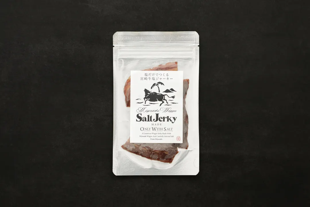宮崎牛の外モモ部位を使用した贅沢な逸品です。 肉と塩だけで作る熟成肉ジャーキーは、原材料を1/5の質量になるまで凝縮されています。 肉本来の深い味わいと濃厚な旨味を誇ります。 塩は、宮崎県日南海岸の黒潮海水で仕上げた「黒潮水晶」を使用しております。 食品添加物不使用です。