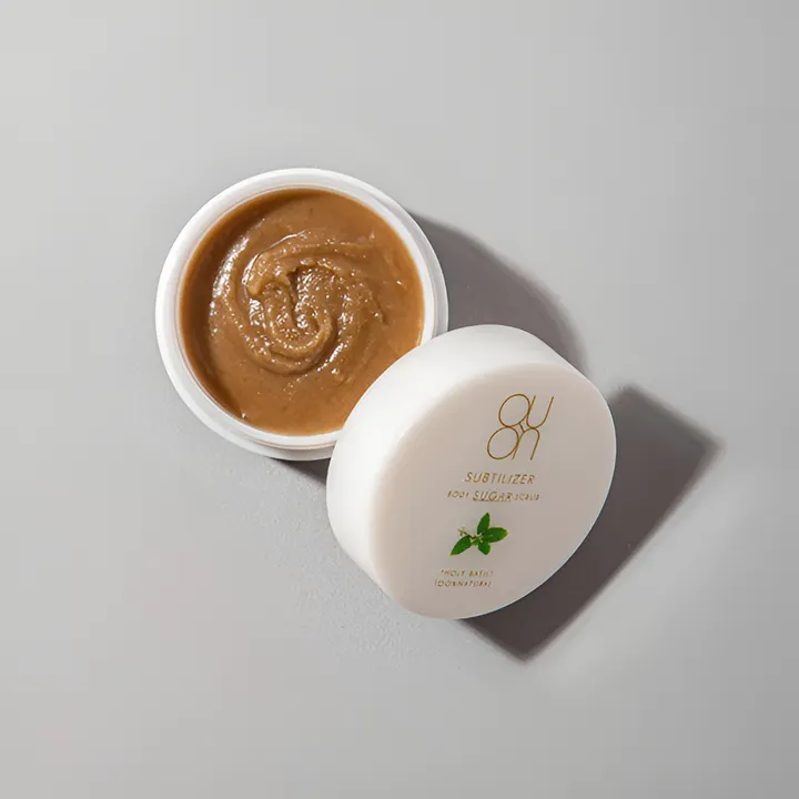 自然の恵みたっぷりのシュガーとオイルでしっとりなめらかボディ 天然成分100%、化学成分フリー、自然の恵みたっぷりなシュガースクラブでしっとりやわらかボディ。 ミネラルたっぷりのサトウキビ由来の素焚糖(*1)(すだきとう)にホーリーバジル(*2)漬け込みオイルが溶け込み潤いに満ちた若々しいお肌へ。 ジェラートのようになめらかなテクスチャーで、スクラブが小さく溶けやすく、スクラブ初心者ややさしくマッサージしたい方にもおすすめです。 そのまま湯船に浸かれば、心身ともにリラックス。 *1::スクロース(保湿) *2:カミメボウキエキス(保湿) ■ Fragrance --------------------- 心からリラックスできるシトラスフローラルの香り ■ How to use --------------------- ▶ STEP1 清潔なスプーンなどで適量(山盛り2杯程度)を手にとり、濡らしたお肌になじませるようやさしくマッサージします。 お顔のケアにもお使いいただけますが、皮膚の薄い部分は特にやさしいタッチで。 週1〜2回のご使用がおすすめです。 ▶ STEP2 その後、ぬるま湯で洗い流してください。 <ベアスキンハーモナイザーフェイスミスト>と<ビューティーアクチュアライザー>、<オイルエッセンス>などで保湿をするとよりお肌がふっくらします。 ▽ スペシャルケア ・マッサージ後は、そのまま湯舟に浸かってバスシュガー代わりとしてご使用いただけます。 ・リップスクラブとしてもご使用可能。 ■ Brand concept ------------------- 人は、自然と美しい。 オーガニックコスメの 新しいとびらがひらかれるとき 日本人の美しい「肌」と日本の美しい「未来」を見つけた 国産ワイルドクラフトコスメ ■ Brand quality --------------------   「QUON(クオン)」というブランド名の由来は、仏教用語の「久遠(くおん)」から。 「遠い過去と未来」「あることがいつまでも続くこと」の意味を指す、日本に古くからある言葉です。   そんな意味をもつブランドの特徴は、国内でも珍しい“国産ワイルドクラフトコスメ”であるということ。 ワイルドクラフトとは、肥料や農薬を一切使わず、また土を耕さず、畑に生きる多様な草や虫といった他の生物を敵としない“いのちの営み”に沿った農法です。 ブランドの軸である大和茶も、標高500mにある奈良県の都祁(つげ)の里で、無農薬・自然農で栽培されたもの。植物本来の生命力が凝縮された“奇跡のお茶”が、わたしたちのお肌に働きかけます。   もう一つは、“海外輸入に頼らない国産の原料選び”。 国産比率100%をめざし、今も原料や生産者探しを続けています。 約30年にわたる国産自然派化粧品の開発技術によって実現できた、“天然由来成分100%”と“化学成分不使用”の約束。厳しい自主基準を定め、厳選された天然素材を肌づくりに最も適したバランスで配合するために、自社工場である唐津コスメティックファクトリー(FACTO)にて、日々研究と開発を重ねています。   美しい肌と未来を見つめ、日本の自然の恵みを注ぎ込むコスメ。それがQUONです。