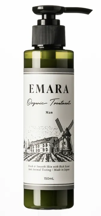 ノンシリコンなので、根元にシリコンが蓄積しないため、抜け毛の予防にもなります。 自然の植物の成分を使用しているので、使い続けても自然な仕上がりになり、べたっとした重い髪の毛の仕上がりにはなりません。 EMARAメンズシャンプーの後に使うことで、さらに香りの効果も持続するとともに、開いてしまったキューティクルもコーティングし、髪のダメージをしっかりと補修します。 EMARAメンズシャンプーの後にトリートメントすることで、香りの持続効果が高まります。 さらに、しっかりと髪をコーティングし、ツヤツヤの髪へ。 毛髪の水分、油分を補い保つことで裂毛、切れ毛、枝毛やカラーリングによるダメージにも効果的。 自然由来指数83.3%(水を含む)ISO16128準拠。15種類の国産オーガニックハーブエキス配合(保湿成分)。 EMARAメンズトリートメントの香りをお楽しみください。 旅行用にも便利な150m Lサイズ。