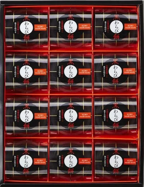まろやかな黒糖の風味広がる『もっちり ぷるん』とした黒わらび餅。 香ばしい黒きな粉との出会いが、美味しさを引き立てます。 【内容】 黒わらび餅 89g×12個 黒きな粉  3.5g×12個 【必ずご確認下さい】 ※メーカー直送のみの対応となります。(送料込み・1ケースから直送可能) ※<中島大祥堂・直送商品>のみでご注文をお願いいたします。<中島大祥堂・直送商品>以外の商品との混載発注は出来ません。 ※北海道・沖縄離島等には発送が出来ません。ご了承ください。 ※通常、ご注文を頂いてから1週間程度でのお届けですが、大型連休・年末年始または天候の影響により1週間以上かかる可能性がございます。その際は、改めてご連絡いたします。 ※包装紙同梱